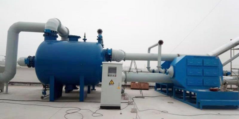 吸附床吸附饱和后,并将脱附出来的有机气体携带出吸附床,蒸汽进入吸附床内,对流活性炭进行间接加热,同时真空泵对吸附床进行抽真空。吸咐床出来的气体经冷凝后,液体进入贮槽,不凝气回流至吸附床进一步吸附。